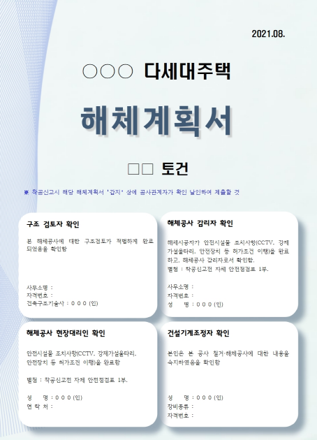 [우리집신문=홍길동 기자] 서울 노원구가 공사장 붕괴사고 예방 등을 위해 해체공사장 안전관리 가이드 라인을 마련해 시행한다고 밝혔다. 전국 최초로 작성해 배포하는 ‘노원구 해체계획서 작성 가이드라인’ 은 기존 서울시의 ‘해체공사장 안전관리 강화대책’을 현장 실정에 맞게 구체화한 것으로 상주감리 강화 등 노원구만의 차별화된 강화대책을 담았다. 주요 내용은 먼저 공사장 안전사고를 미연에 방지하기 위해 △ 건물 해체계획서의 올바른 수립이다. 최근 발생한 해체공사장 안전사고와 관련하여 국토부와 서울시가 기존보다 대폭 강화된 안전 강화 대책을 내놓았으나, 일선의 대다수 영세 해체 업체들이 강화된 해체계획서를 수립하기에 역부족인 것이 현실이다. 구는 이러한 어려움을 해결하고자 그 동안의 강화대책과 각종 매뉴얼을 참고, 전문가 자문을 거쳤다. 해체 허가와 신고를 위한 해체 계획서를 작성하고자 하는 모든 사람이 참고할 수 있도록 구 홈페이지 행정자료실에 게시해 다운로드 해 활용할 수 있도록 했다. △ ‘계획 따로 시공 따로‘의 폐단을 미연에 차단하기 위한 방안도 마련했다. 착공신고 시 해체계획서의 내용을 구조검토자, 해체공사 감리자, 현장대리인 및 건설기계조정자가 숙지하고 있는지 확인·날인하도록 하도록 한 것이다. △ ‘상주감리’ 의무화 대상도 확대했다. 구는 서울시가 수립한 강화대책 중 해체허가 공사장으로 국한한 ‘상주감리’를 해체신고 공사장을 포함 모든 해체공사장으로 확대 시행한다. 마지막으로 해체공사 단계별 필수 확인 내용을 설정하고, 필수 확인점 도래 시 감리자가 점검을 실시하고 수시로 보고하도록 했으며, 전 과정에 대한 행정모니터링도 강화한다. 한편, 구는 2019년 지역 내 각종 건축물 안전사고 예방 및 종합적인 안전관리시스템 을 구축하고자 ‘노원구 건축안전센터’를 설치했다. 건축사 및 구조전문가를 배치해 공사장 안전사고 예방, 노후 건축물 안전관리, 지진이나 화재 등 천재지변에 대비한 재난관리를 수행하고 있다. 오는 22년 말까지 토목시공기술사, 건설안전기술사 등 전문인력을 추가로 배치할 계획이다. 오승록 구청장은 “최근 발생한 해체공사장 관련 사고는 다시는 되풀이 되면 안되는 비극”라면서 “해체공사자의 계획부터 완료까지 일련의 과정들에 대한 세심한 점검 및 안전 강화로 소중한 구민의 생명과 재산을 지키기 위해 최선을 다하겠다”라고 말했다. <저작권자 ⓒ 옆집신문 무단전재 및 재배포 금지>