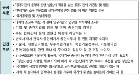 정부 주요 직위 후보자 '국민추천제' 신설…우수 인재 영입정무직·공공기관 임원·행정기관 위원회 민간위원·개방형 대상 국가인재DB 이용, 17개 시·도 774개 지방출연기관까지 확대정부 주요 직위 후보자를 국민이 직접 추천하는 '국민추천제' 규정을 신설해 추천대상 직위와 활용 절차 마련 등 운영 체계를 구체화한다.